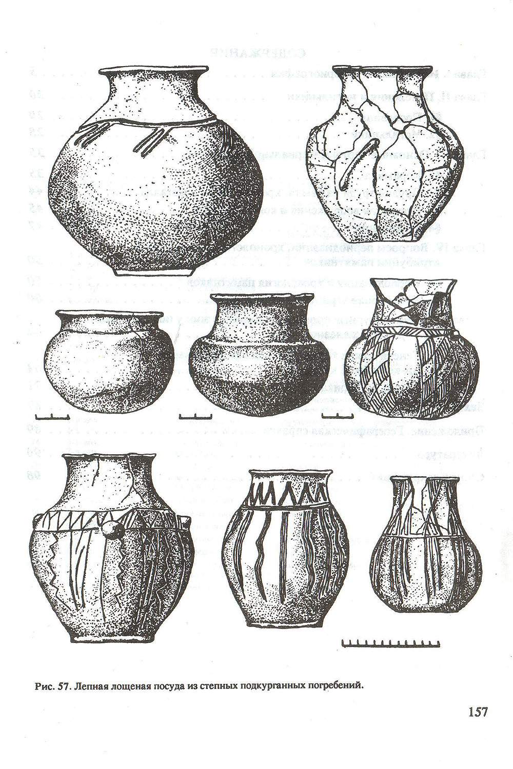 Рис. 57. Лепная лощеная посуда из степных подкурганных погребений.